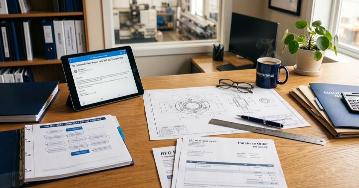 Here's something worth noting: for many small manufacturers, email is already the de facto Quality Record for contract review. The quote email to the customer captures what you understood the requirements to be and what you're committing to deliver. The customer's reply or PO confirms alignment.